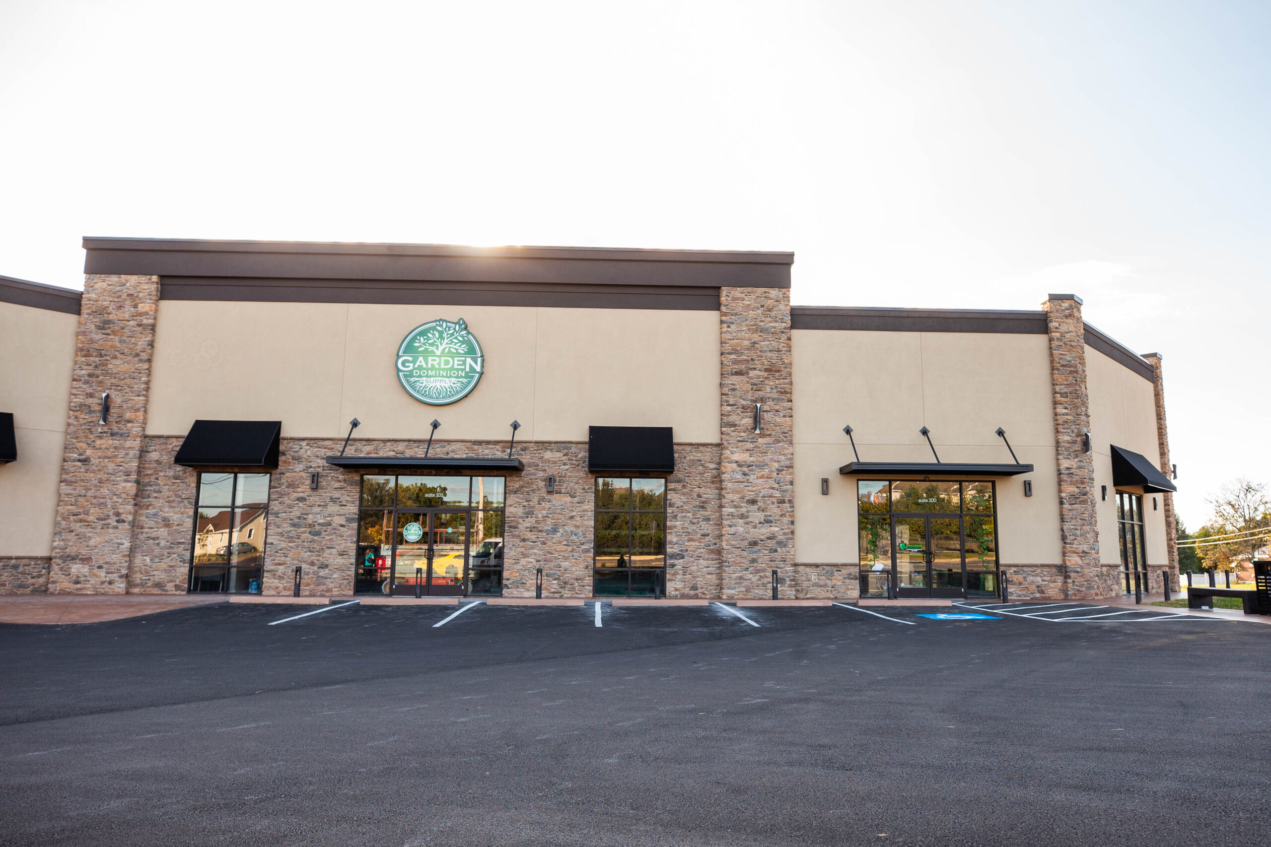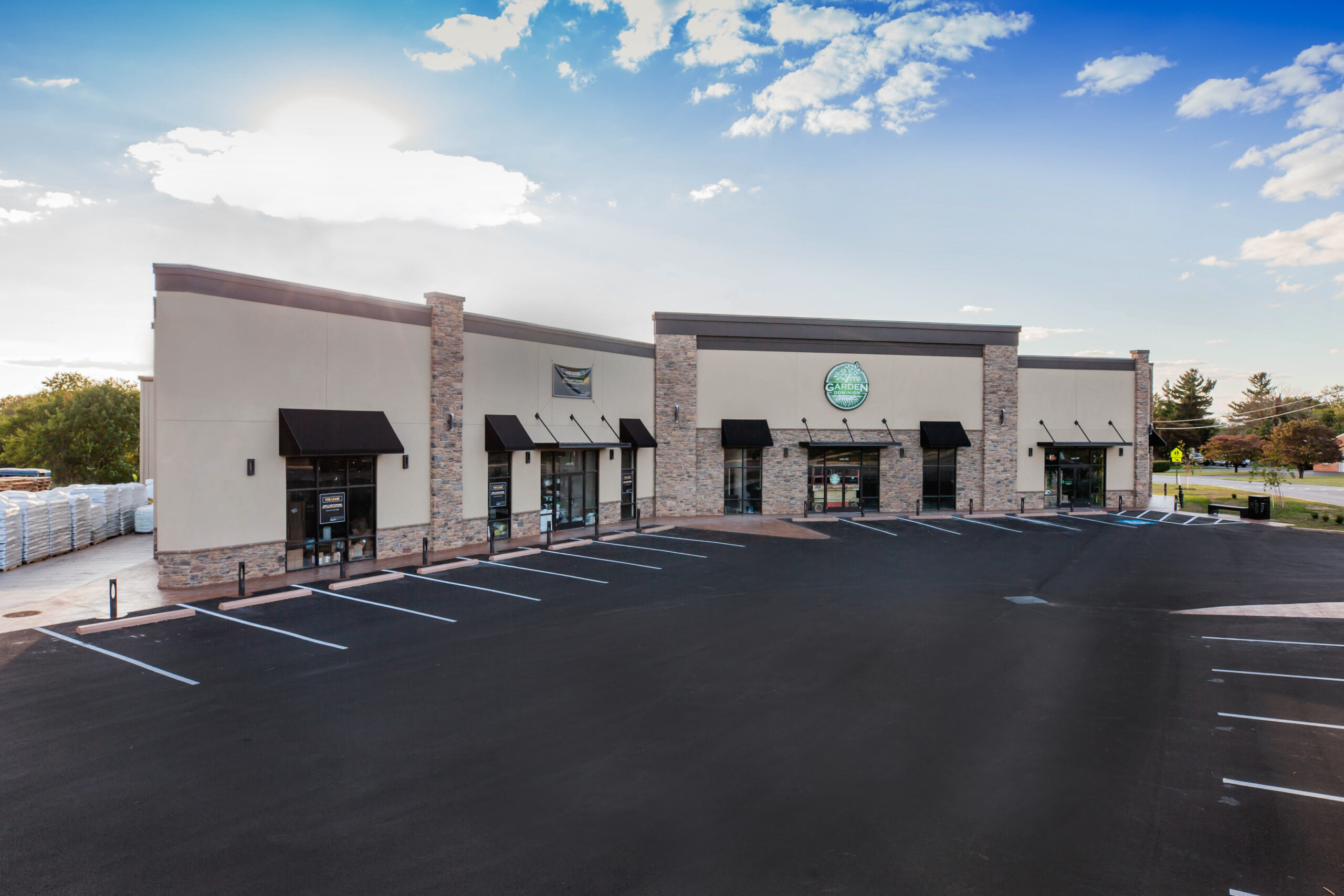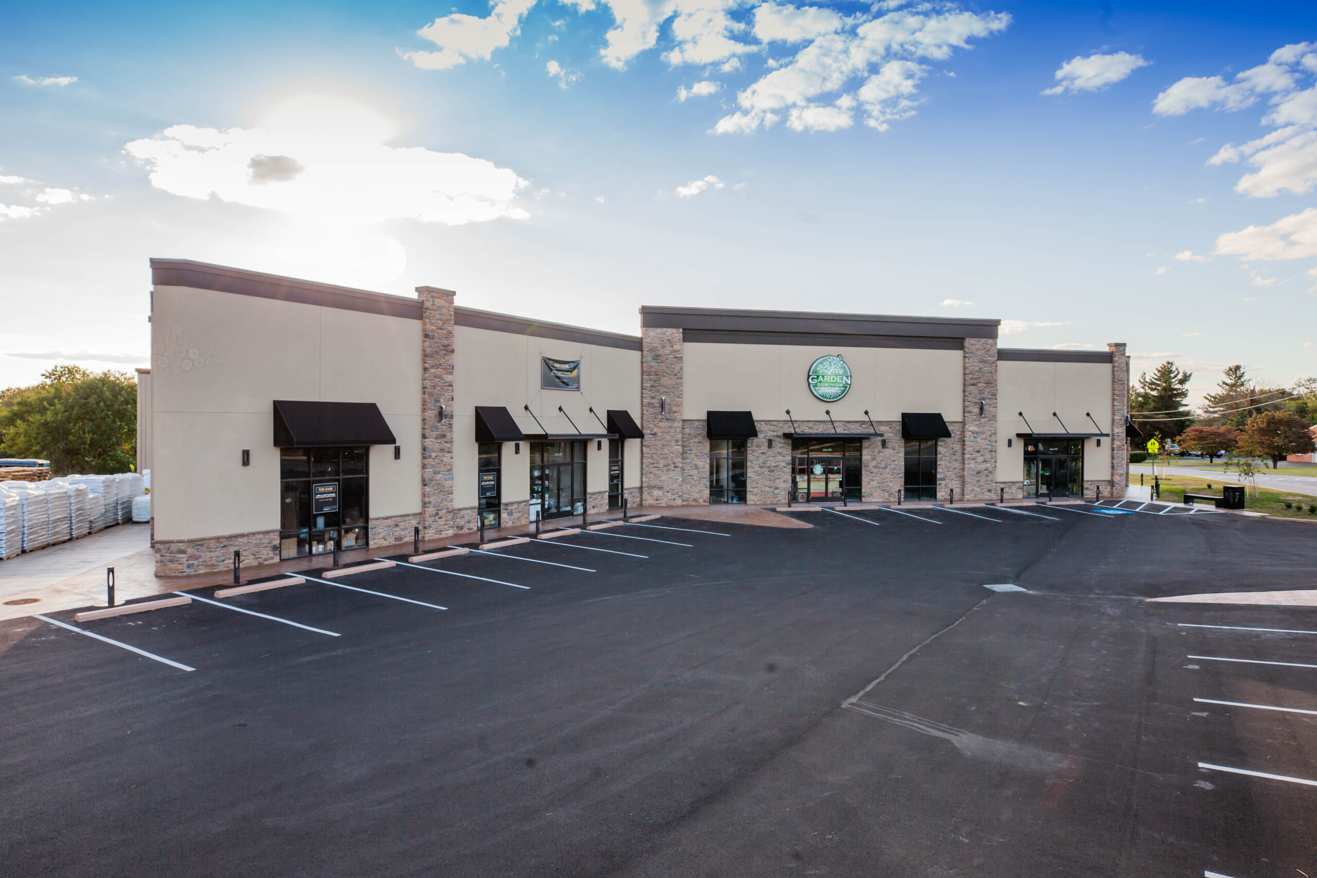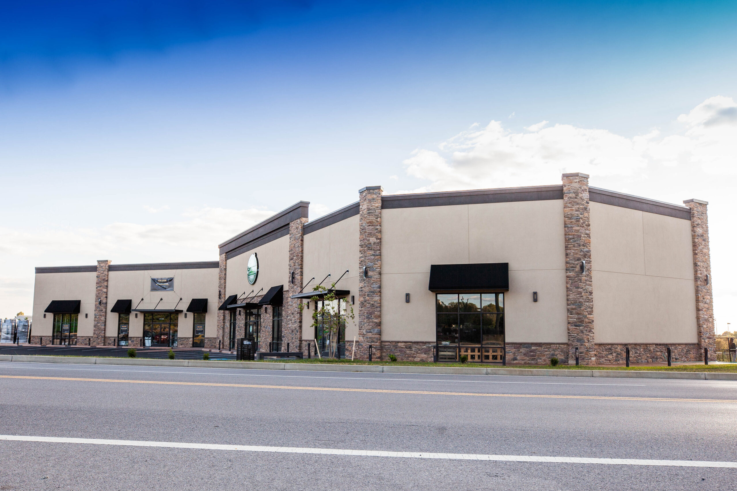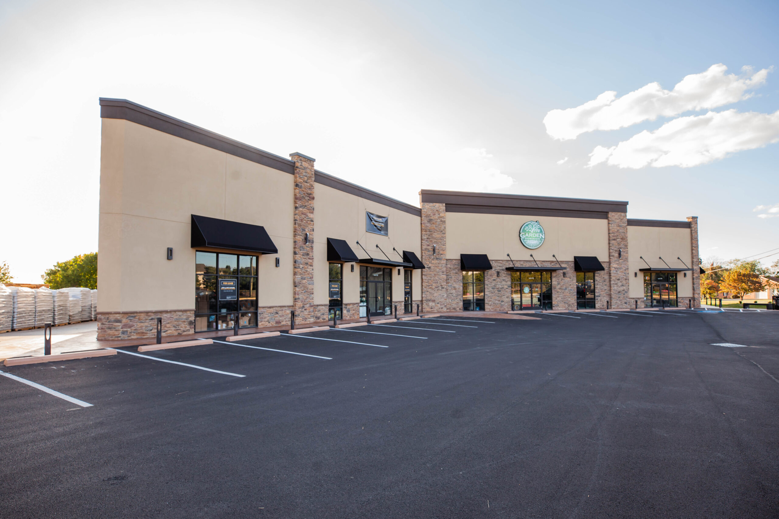 A 10,400 sq. ft. steel building in Hagerstown MD. Project included erecting new building overtop of existing after which we demolished the existing. Built a façade parapet wall with stone veneer and stucco.