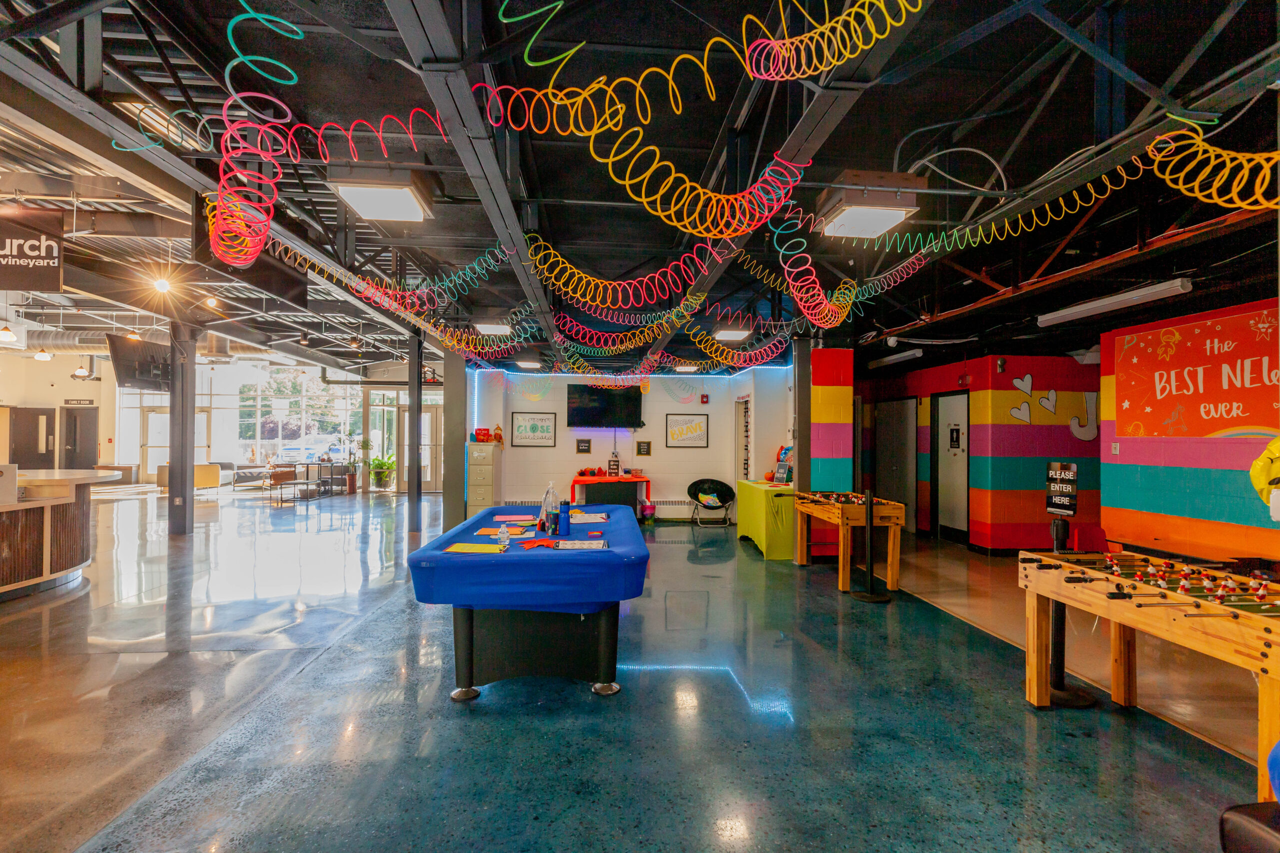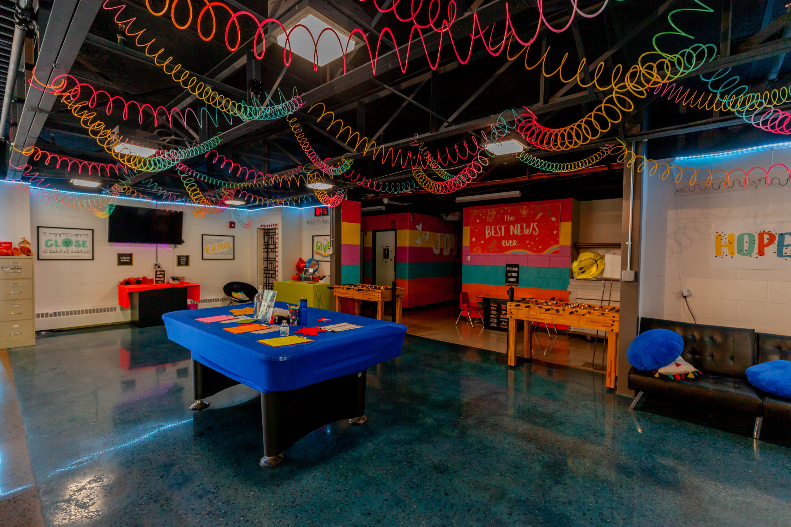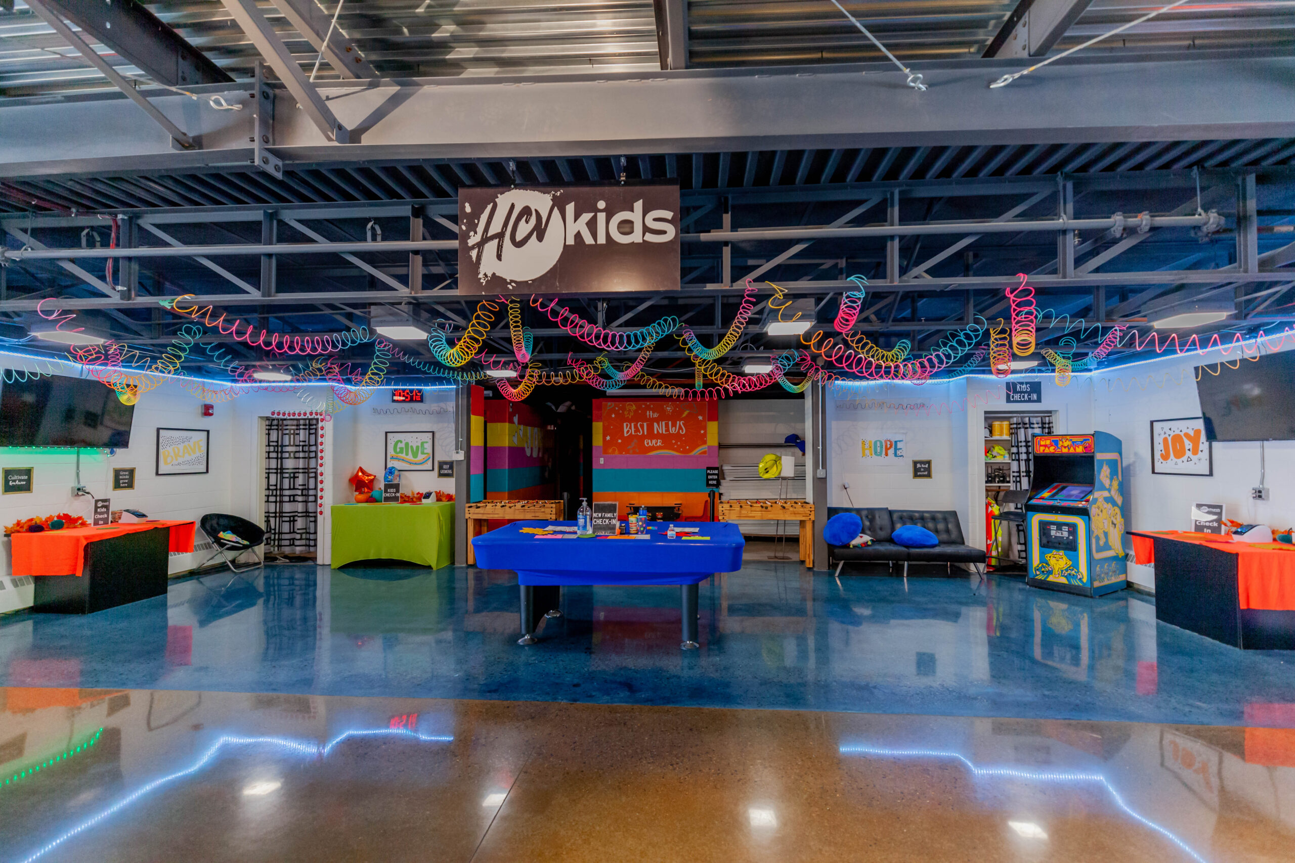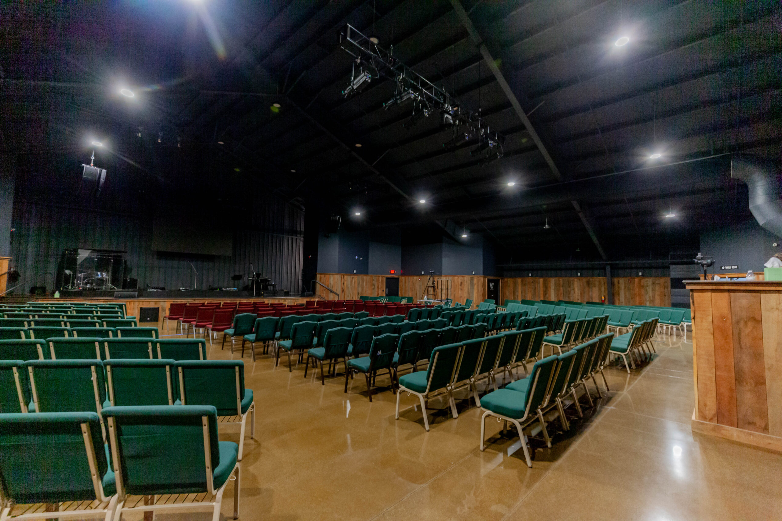 Constructed a new 13,000 sq. ft. steel building for HCV Church. Included insulated metal roof panels; the interior walls of sanctuary had perforated metal liner panel and wood wainscoting. Floors included polished and dyed concrete floors in sanctuary and vestibules.